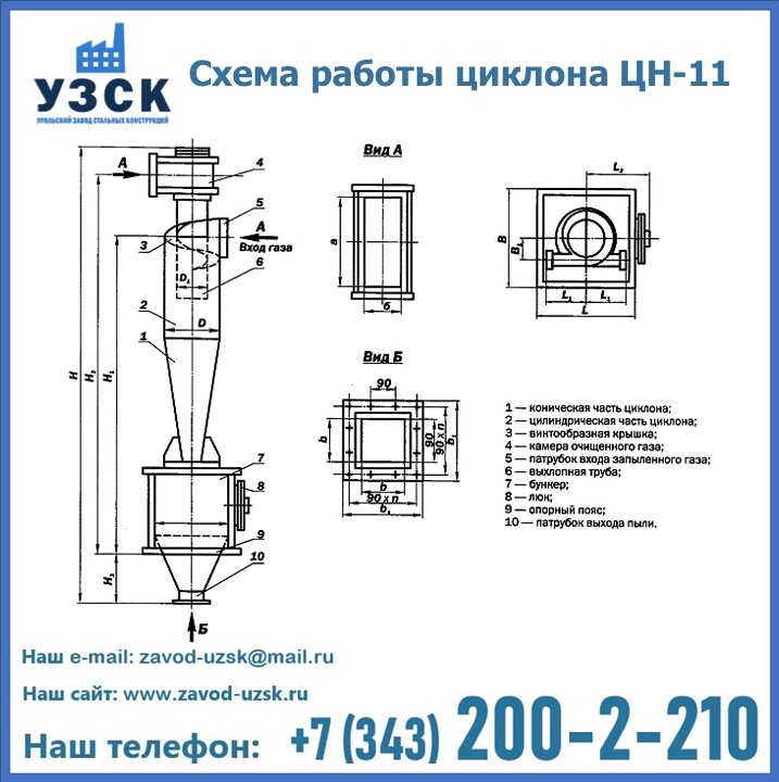 При этом ощутимой разницы в цене между универсальным и узконаправленным, подобранным в соответствии с конкретными техническими требованиями циклоном, нет. Стоимость воздухоочистительного оборудования типа циклон обусловлена маркой и толщиной стали, из которого он изготовлен, сложностью и специфичностью конструкции, наличием дополнительного оснащения (бункер, улитка и другие). При необходимости, на заводе УЗСК в Кокшетау будет изготовлен циклон по индивидуальным техническим чертежам заказчика.