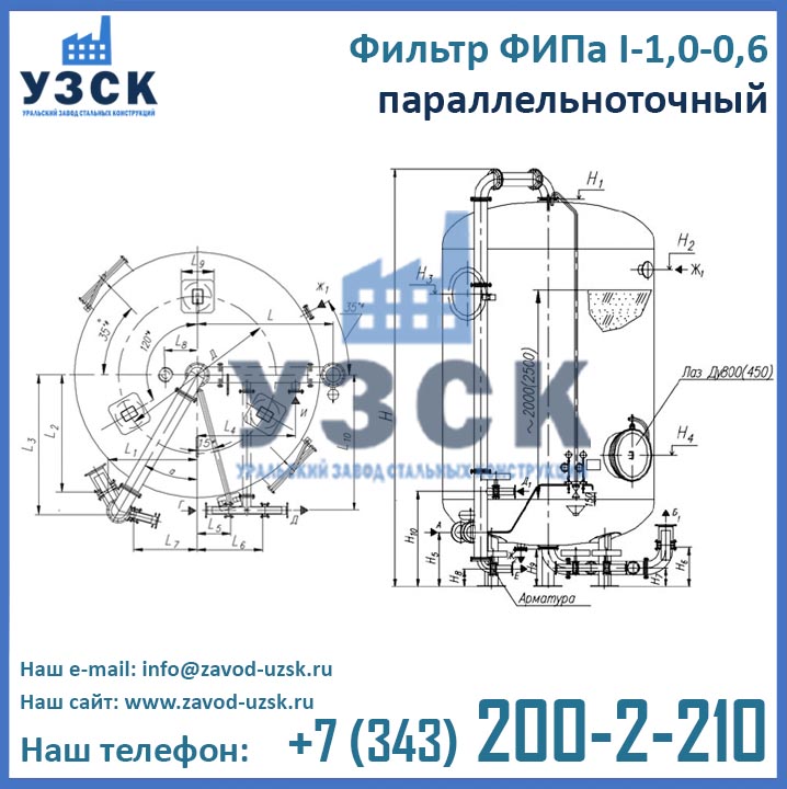 Для того, чтобы купить фильтр ФИПа1 1,0-0,6 в Кокшетау выгодно, необходимо обратиться непосредственно к производителю данного оборудования. Ведущий производитель фильтров для смягчения воды – Уральский Завод Стальных Конструкций – предлагает фильтры натрий-катионитные параллельноточные по низким ценам. Оформить заказ на изготовление фильтра ФИПаI 1,0-0,6 Вы можете по электронной почте, указанной в разделе «Контакты» или при помощи формы заказа, расположенной ниже.