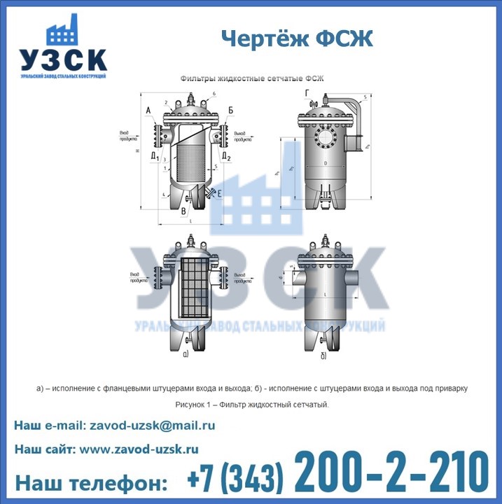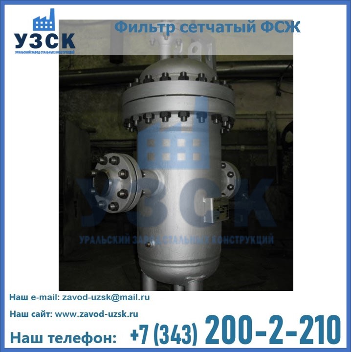 Очистку перекачиваемых жидкостей на предприятиях нефтяной, пищевой, горнорудной, фармацевтической и других отраслей промышленности эффективно выполнять с помощью жидкостного сетчатого фильтра — емкостное оборудование цилиндрической формы со съемной крышкой и элементом фильтрации внутри. Оснащенные им всасывающие линии насосных станций и установок защищены от проникновения твердых частиц в функциональные узлы гидравлической системы. Оборудование служит для перекачивания токсичных, агрессивных и иных эмульсий, суспензий, жидкостей. Купить фильтр сетчатый жидкостный ФСЖ в Кокшетау с гарантией производителя предлагает «Уральский завод стальных конструкций». Мы выполняем проектирование и изготовление ФСЖ по индивидуальным требованиям (климатическая зона, транспортируемая жидкость).