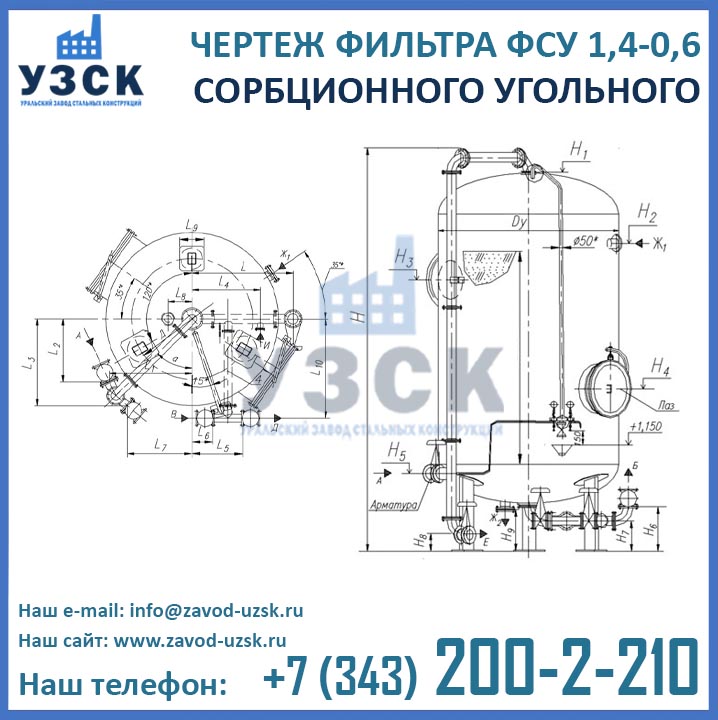 Если вы ищете фильтры ФСУ-1,4-0,6 в Кокшетау от изготовителя, то Вы на правильном пути! Уральский завод стальных конструкций – непосредственный производитель сорбционных фильтров ФСУ, предлагающий самые выгодные цены на ФСУ-1.4-0.6 в Кокшетау. По окончании процесса производства угольные фильтры проходят гидравлические испытания пробным давлением 0,9 МПа на аттестованном гидростенде, находящимся в собственности завода УЗСК. Мы гарантируем высокое качество выпускаемой продукции, и в этом уже убедились ведущие предприятия промышленного сектора России и стран ЕАЭС (см. раздел «Наши клиенты»).