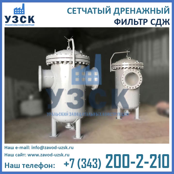 На формирование цены дренажного фильтра влияют следующие факторы: материальное исполнение, конструктивное исполнение, стоимость сырья в момент изготовления, комплектация, необходимость доставки в другой населенный пункт, срочность выполнения работ по изготовлению, прочие предпочтения заказчика. Уральский завод стальных конструкций изготавливает фильтры СДЖ-700 любого типового исполнения, а также нестандартные фильтры СДЖ 700 мм по чертежам заказчика или техническому заданию. Дополнительно к фильтрам СДЖ у нас Вы можете заказать сменные фильтрующие элементы любой тонкости фильтрации, ответные фланцы, прокладки и крепеж. По запросу изготавливаем также фильтры СДЖ-К-700 с концевым затвором. Для того чтобы узнать какова цена на фильтр СДЖ Ду700 в Кокшетау с необходимыми Вам характеристиками, отправьте запрос в отдел продаж завода УЗСК по координатам, указанным в разделе «Контакты».