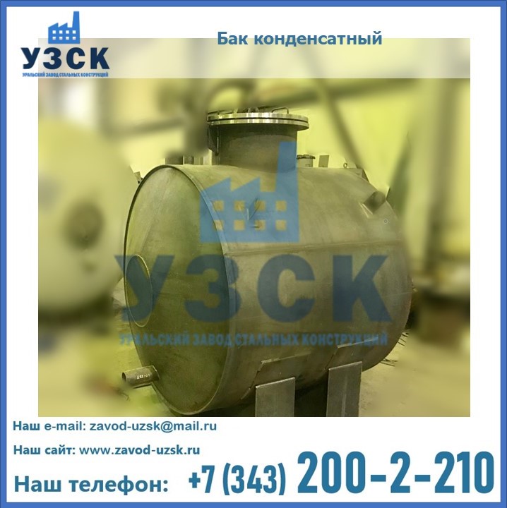 Многие заказчики стараются конденсатные баки купить по выгодной цене в компании «УЗСК» в Кокшетау. Причин несколько. Производитель поставляет емкости с полным комплектом лестниц, площадок обслуживания. Бак после гидравлических испытаний покрывают специальной внутренней и наружной краской, накладывают теплоизоляцию или наваривают крепеж для навески минматов. Условия теплоизоляции согласуются с заказчиком.